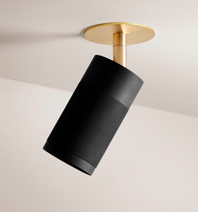 Thorup Copenhagen Patrone Einbau-Deckenstrahler m/Abdeckplatte, schwarz-brüniertes Messing, 120 mm.