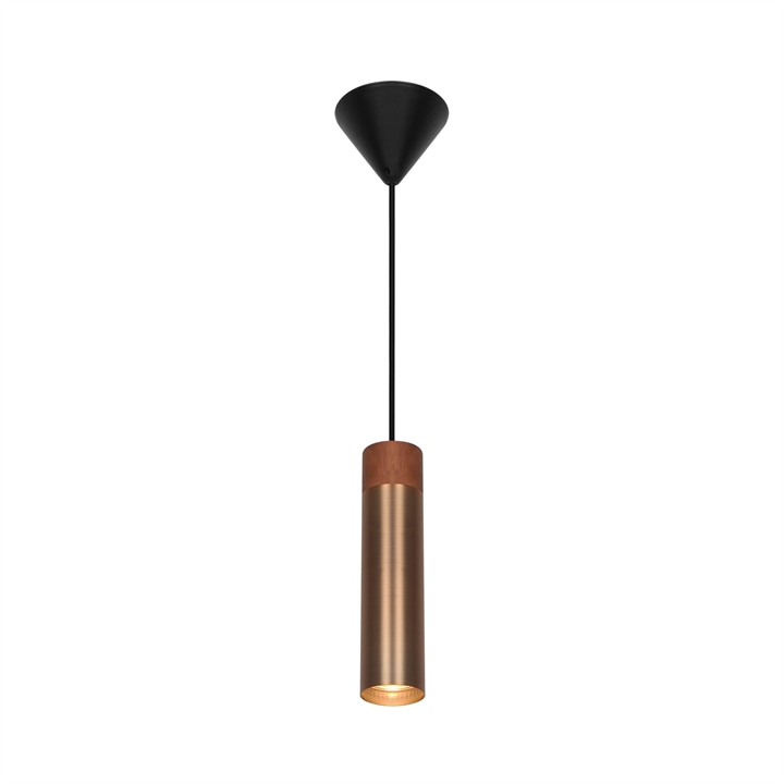 Diese Variante in brüniertem Messing mit passendem stilvollem Holzabschluss hat eine vielseitige Anwendung, die sie perfekt macht, um Ihren Esstisch oder Ihre Kücheninsel zu beleuchten, eine dunkle Ecke im Wohnzimmer aufzufrischen oder als Ersatz für eine Wand- oder Tischlampe neben dem Bett. Verleihen Sie Ihrem Zuhause ein modernes und funktionales Upgrade mit Tilo.