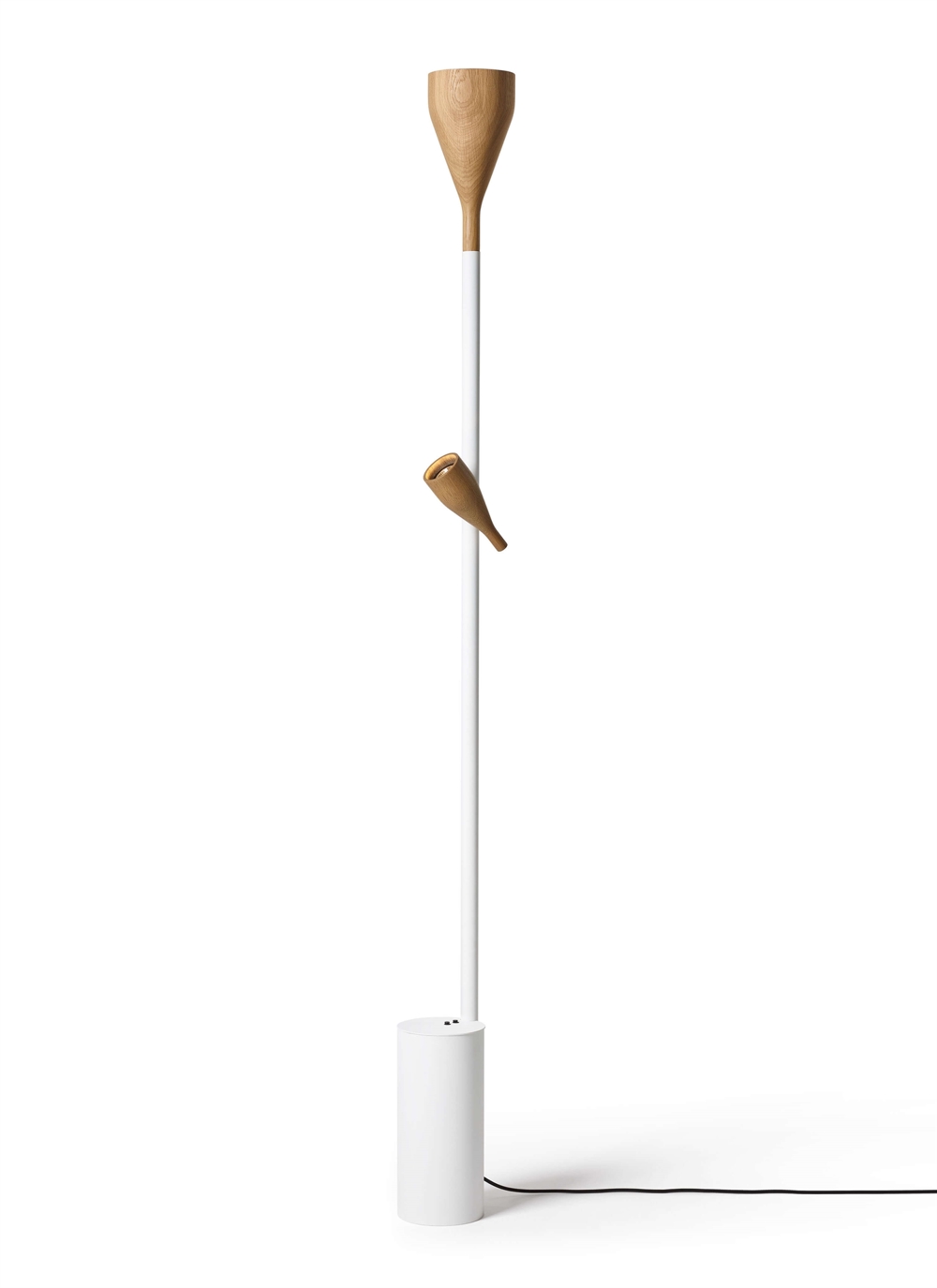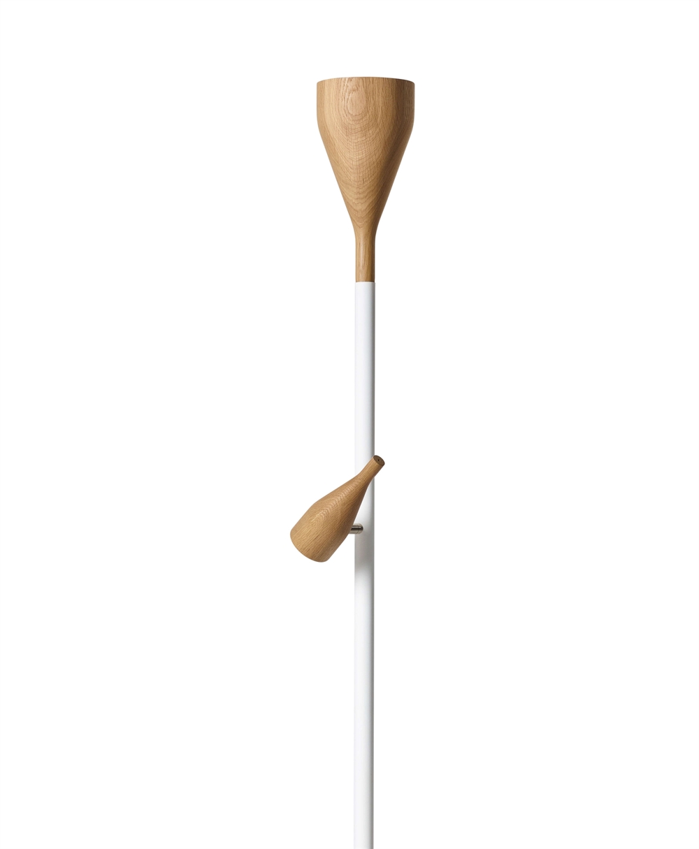 Timber Floor Spot und Uplight sind Teil der modernen Stehlampe Timber Floor. Die beiden Lichtquellen können gedimmt und unabhängig voneinander ein- und ausgeschaltet werden, und der bewegliche Spot bietet ein gutes Leselicht.