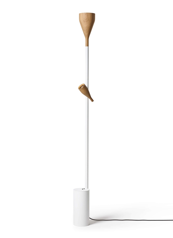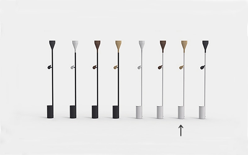 Timber Floor ist neben Weiß auch in Schwarz mit Spot und Uplight in vier verschiedenen Varianten erhältlich: Eiche, Walnuss, weiß gebeizte Esche oder schwarz gebeizte Esche.