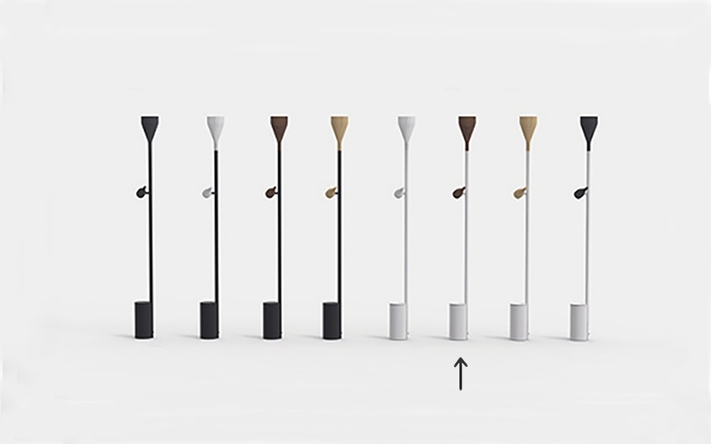 Timber Floor ist neben Weiß auch in Schwarz mit Spot und Uplight in vier verschiedenen Varianten erhältlich: Eiche, Walnuss, weiß gebeizte Esche oder schwarz gebeizte Esche. Hier wird Timber Floor hauptsächlich mit Spot und Uplight in Eiche gezeigt.