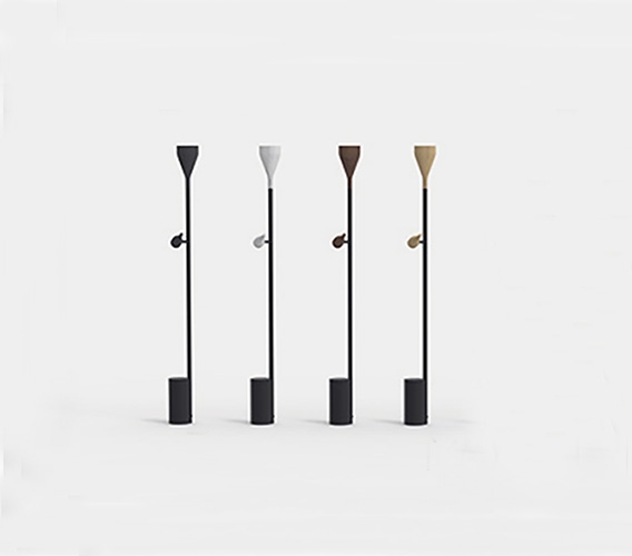 Timber Floor ist neben Schwarz auch in Weiß mit Spot und Uplight in vier verschiedenen Varianten erhältlich: Eiche, Walnuss, weiß gebeizte Esche oder schwarz gebeizte Esche.