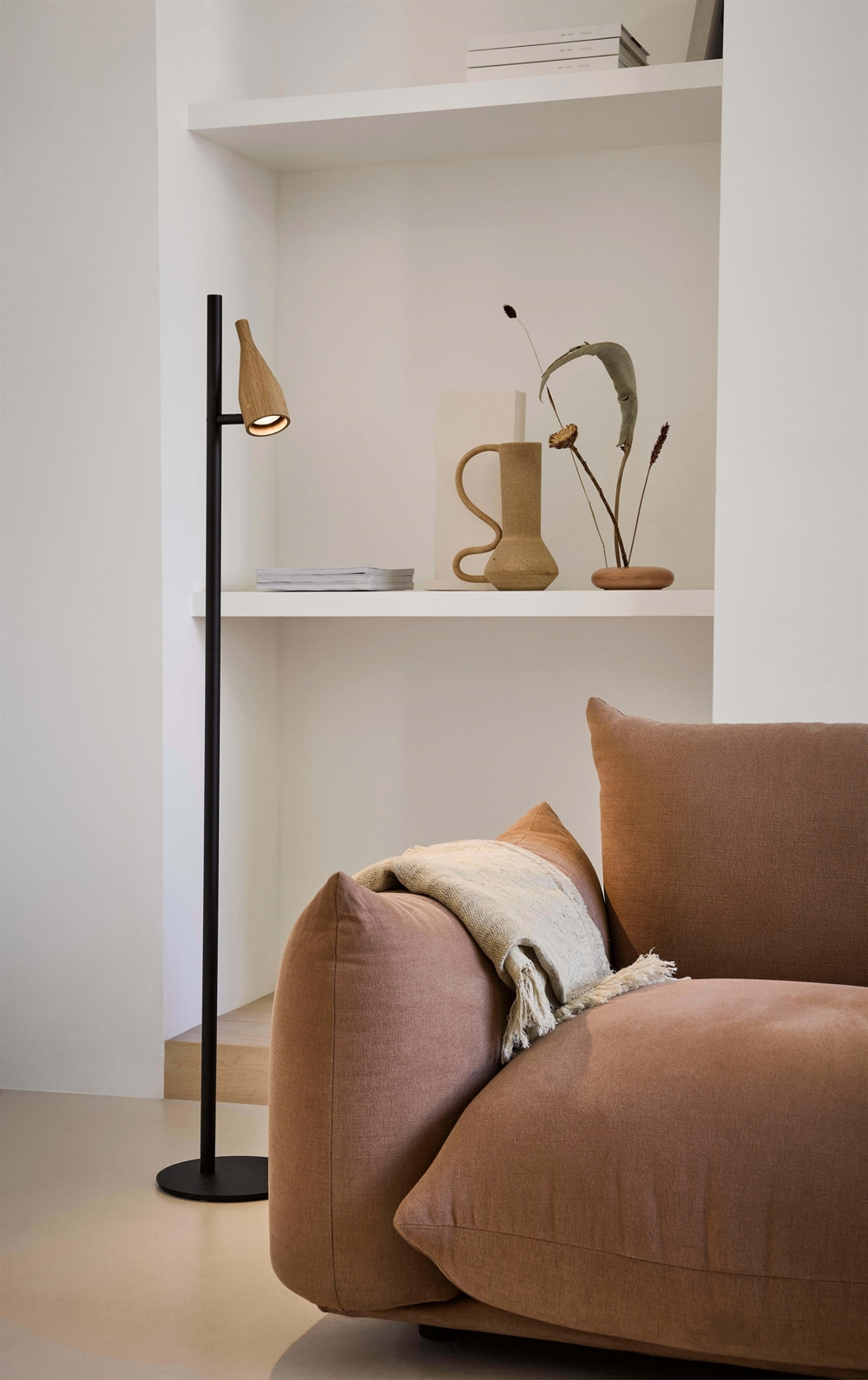 Lounge Single in der Timber-Serie ist eine Stehlampe mit einem beweglichen Spot, der die Lampe beispielsweise als Leselampe nutzbar macht.