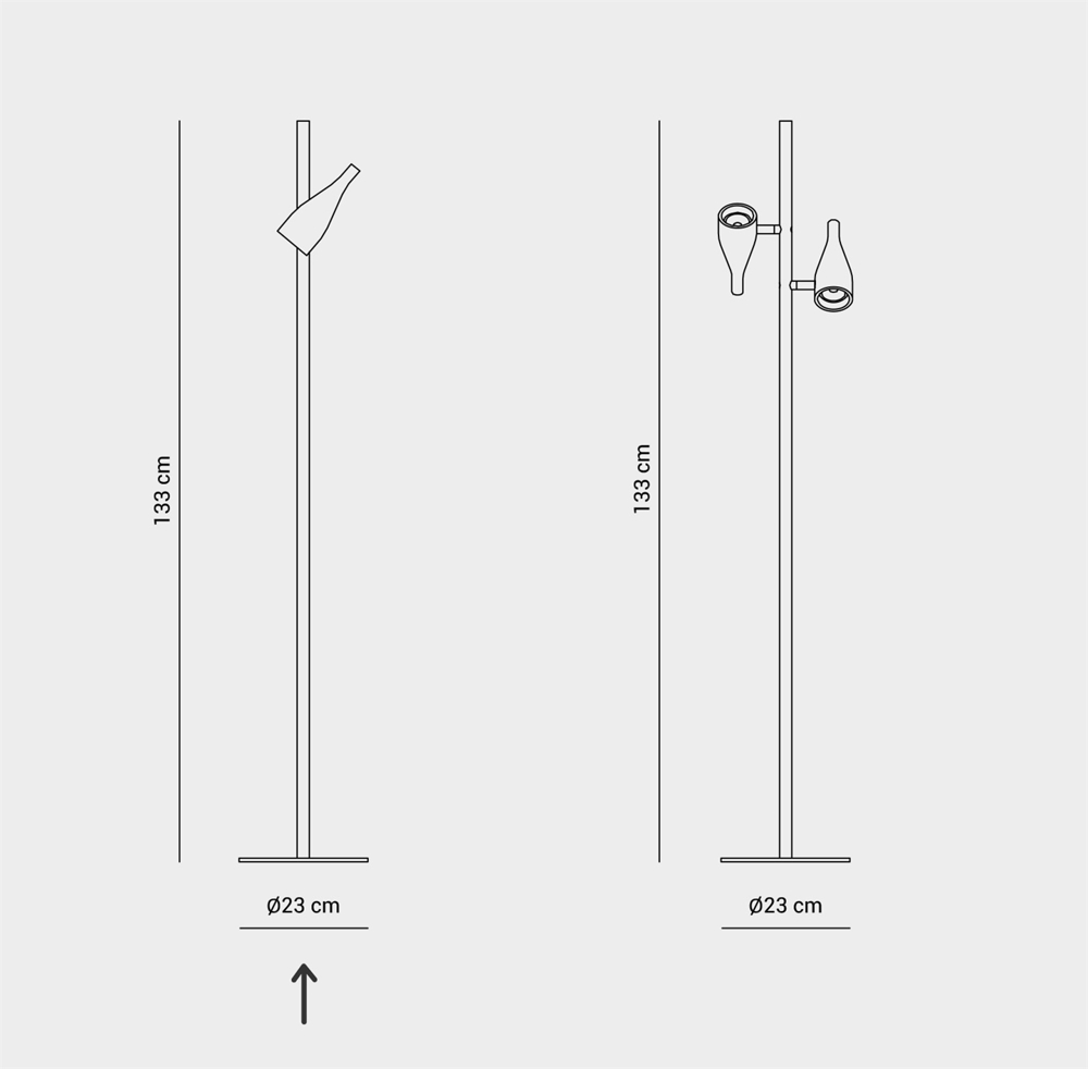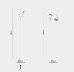 Materialien: Pulverbeschichteter Stahl (Basis und Stange), Holz (Spot)