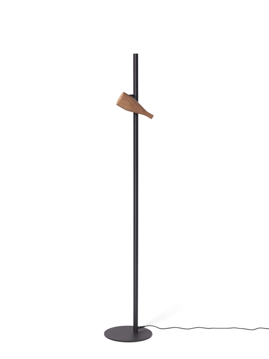 Lounge Single in der Timber-Serie ist eine Stehlampe mit einem beweglichen Spot, der die Lampe beispielsweise als Leselampe nutzbar macht.