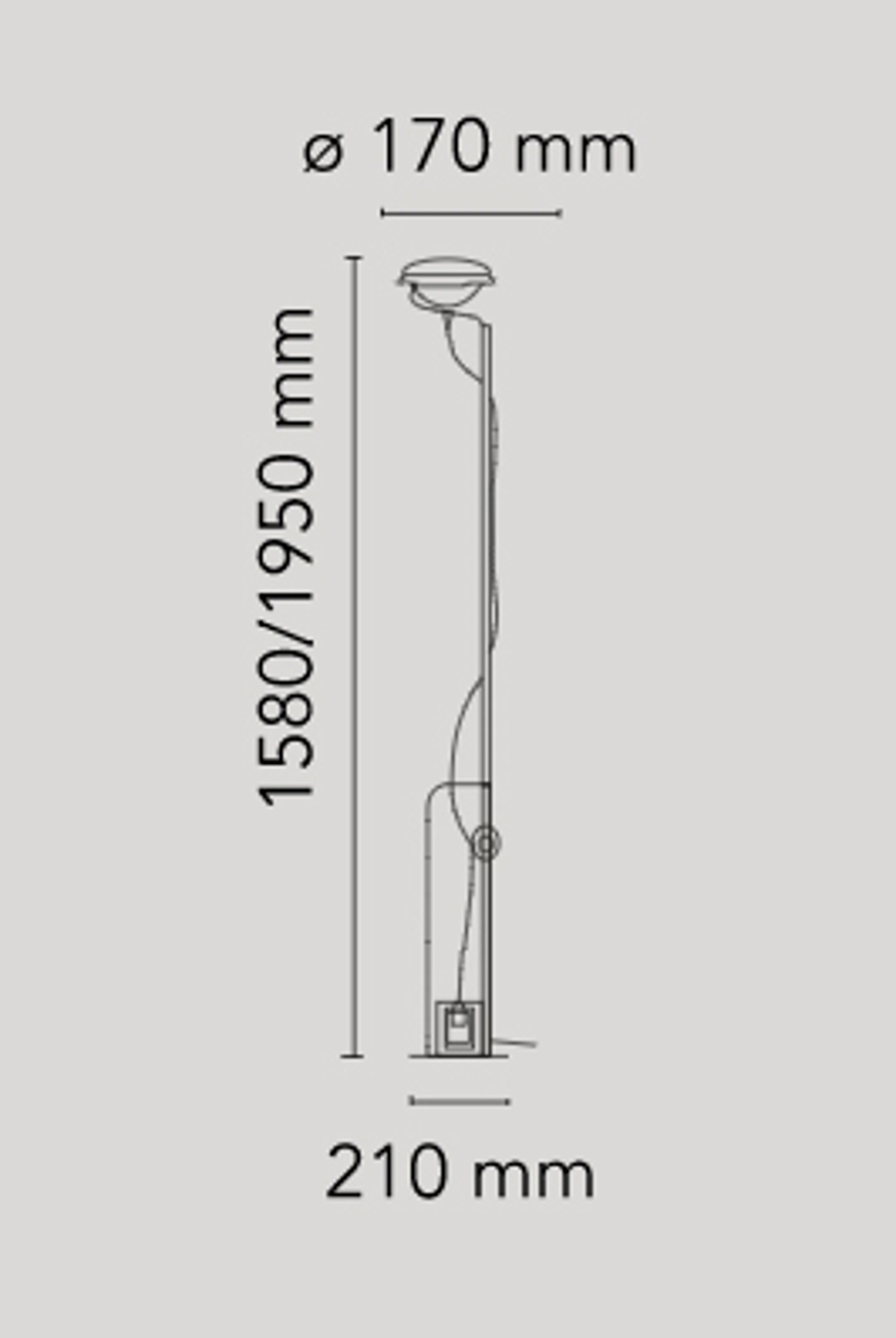 Toio ist eine unkonventionelle Stehleuchte in schlichtem Design. Die Lampe hat einen nach oben gerichteten Spot, der somit ein indirektes Licht im Raum erzeugt. Die Höhe ist verstellbar und es gibt einen elektronischen Dimmer am Kabel, sodass die Lichtstärke reguliert werden kann.