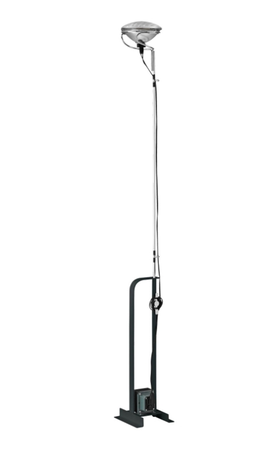 Toio zeichnet sich durch seine offene Konstruktion und rohe Ästhetik aus, bei der die Lichtquelle selbst eine zentrale visuelle Rolle spielt. Die einfache und durchdachte Konstruktion macht die Lampe sowohl skulptural als auch funktional, und der höhenverstellbare Stab ermöglicht es, die Lichtausrichtung nach Bedarf anzupassen.