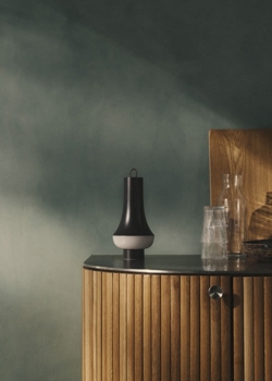 Die minimalistische Batterielampe ist das Ergebnis einer Zusammenarbeit zwischen Louis Poulsen und dem Designstudio Nendo mit Sitz in Tokio und ist mit ihren klaren Linien und hoher Qualität eine Wertschätzung von Minimalismus und Handwerk in den beiden Designkulturen. Der Name Tomoshi ist eine Art, Licht auf Japanisch zu sagen.