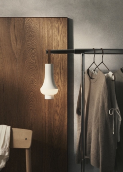 Die minimalistische Batterielampe ist das Ergebnis einer Zusammenarbeit zwischen Louis Poulsen und dem in Tokio ansässigen Designstudio Nendo und ist mit ihren klaren Linien und ihrer hohen Qualität eine Wertschätzung der Minimalismus und Handwerkskunst in den beiden Designkulturen. Der Name Tomoshi ist eine Art, Licht auf Japanisch zu sagen.