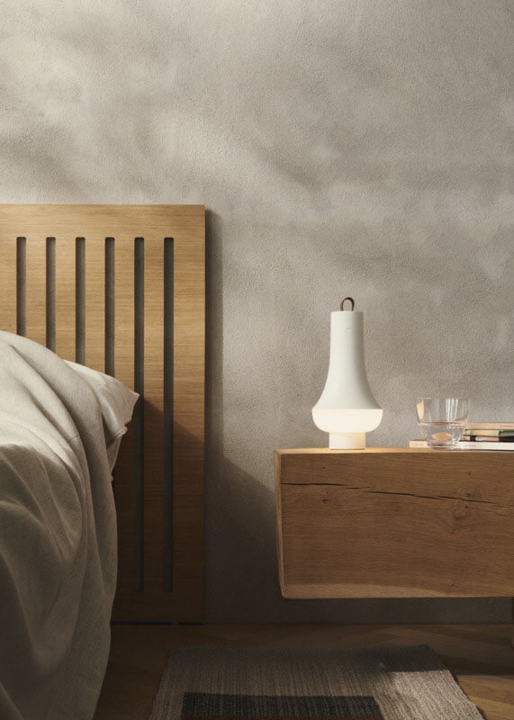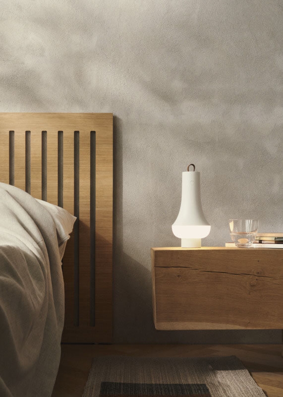 Die Batterielampe Tomoshi Portable ist eine tragbare Tischleuchte mit einem weichen, blendfreien Licht, das ein schönes nach unten gerichtetes und 360° umgebendes Licht bietet.