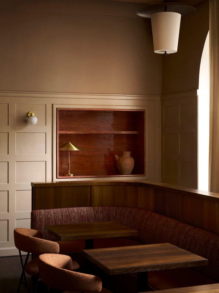 Das Design der Pendelleuchte Toton entspringt der Idee, Musikalität in Licht zu verwandeln, und wurde für das kombinierte Restaurant und den Jazzclub Epicurus in Kopenhagen geschaffen. Inspiriert vom Jazz ist der Ausdruck der Lampe eine Mischung aus Nostalgie und Modernität mit einer zeitlosen Eleganz des Designs der 1930er Jahre in einer modernen Interpretation.