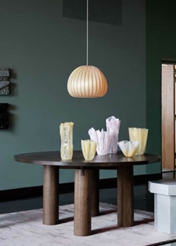 Die TR12 hat ein sehr klassisches Aussehen, das mit seinen weichen und runden Formen den Esstisch sowohl allein als auch in Gruppen von mehreren Pendelleuchten schön ergänzt. Die Pendelleuchte ist in zwei verschiedenen Materialien erhältlich: Birke und Papier. Die Materialien des Schirms haben unterschiedliche Ausdrücke und Beleuchtungsgrade. Der weiße Farbton bietet ein gleichmäßiges, allgemeines Licht in einem angenehmen weißen Ton, während die Birken-Pendelleuchten ein weicheres und wärmeres Licht abgeben.