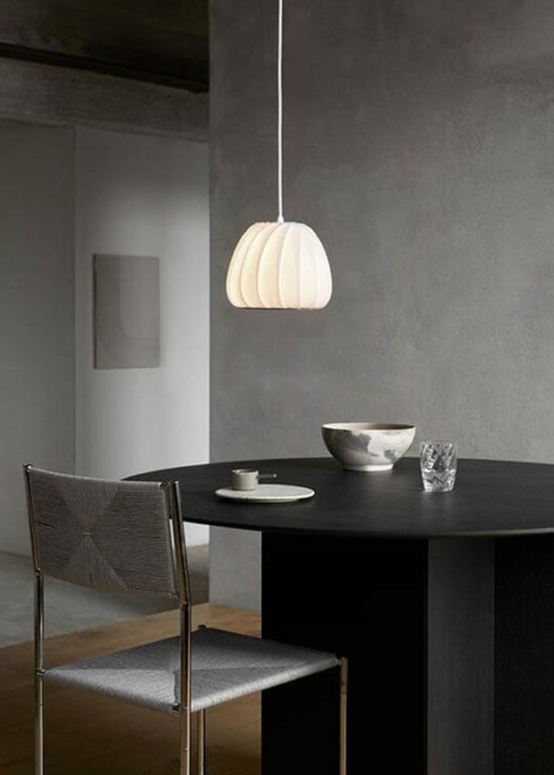 TR12 hat ein sehr klassisches Aussehen, das mit seinen weichen und runden Formen den Esstisch schön ergänzt – sowohl allein als auch in Gruppen von mehreren Pendelleuchten. Die Pendelleuchte ist in zwei verschiedenen Materialien erhältlich: Birke und Papier. Die Materialien des Schirms haben unterschiedliche Ausdrücke und Beleuchtungsgrade. Der weiße Farbton sorgt für ein gleichmäßiges, allgemeines Licht in einem angenehmen weißen Ton, während die Birken-Pendelleuchten ein weicheres und wärmeres Licht abgeben.
