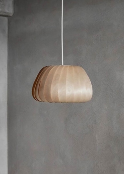 Die Pendelleuchte besteht aus Birke, die im Laufe der Zeit eine schöne Patina entwickelt, wobei sich die Struktur des Holzes leicht verändert. Dies betont die Maserung des Holzes und macht sie etwas heller.