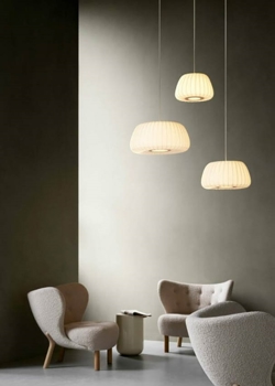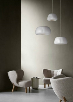 Die TR19 hat ein sehr klassisches Aussehen, das mit seinen weichen und runden Formen den Esstisch sowohl allein als auch in Gruppen von mehreren Pendelleuchten schön ergänzt. Die Pendelleuchte ist in zwei verschiedenen Materialien erhältlich: Birke und Papier. Die Materialien des Schirms haben unterschiedliche Ausdrücke und Beleuchtungsgrade. Der weiße Farbton bietet ein gleichmäßiges, allgemeines Licht in einem angenehmen weißen Ton, während die Birken-Pendelleuchten ein weicheres und wärmeres Licht abgeben.