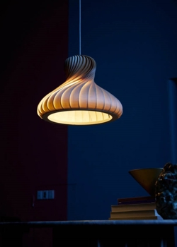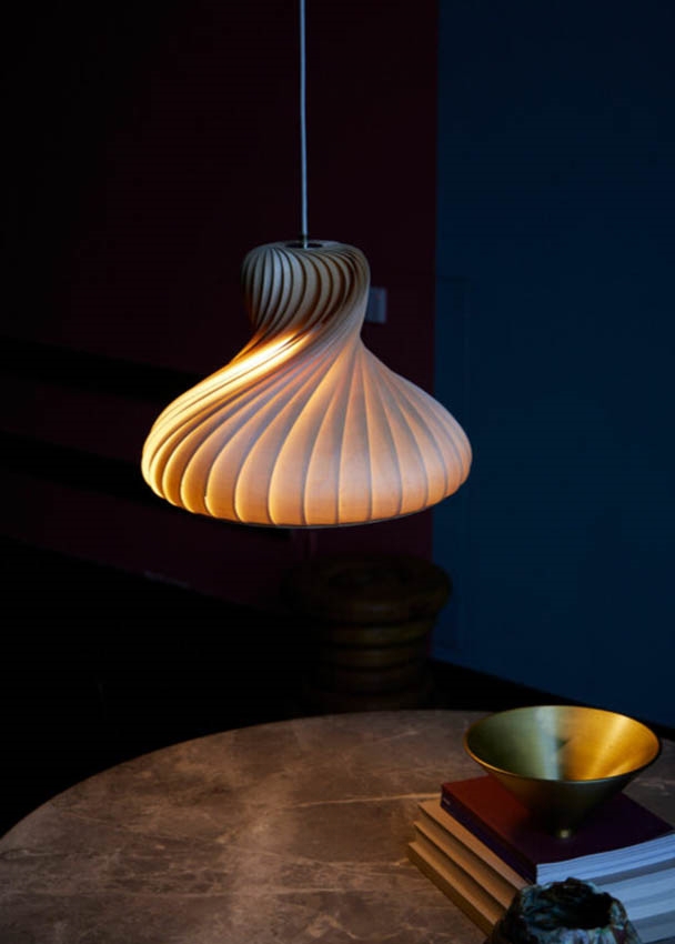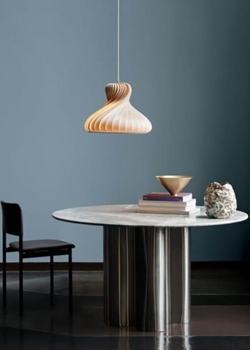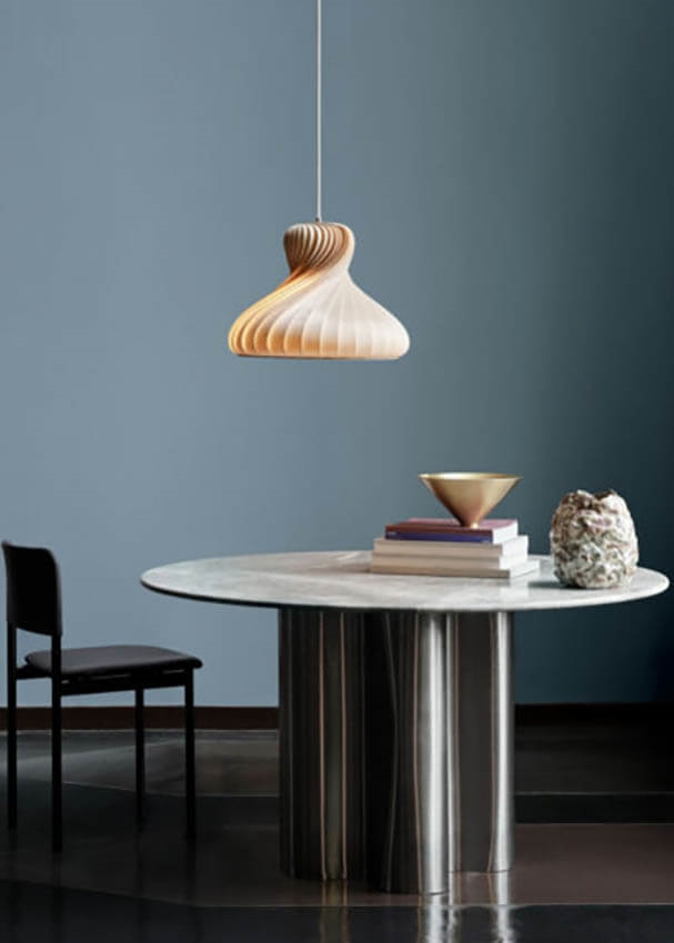 TR22 hat ein sehr klassisches Aussehen, das mit seinen weichen und runden Formen den Esstisch wunderschön ergänzt – sowohl allein als auch in Gruppen von mehreren Pendelleuchten. Die Pendelleuchte ist aus Birke gefertigt, die im Laufe der Zeit eine schöne Patina entwickelt, wobei sich die Struktur des Holzes leicht verändert. Dies betont die Maserung des Holzes und macht sie etwas heller.