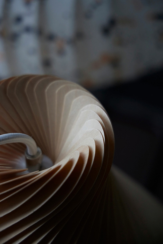 Die Pendelleuchte besteht aus Birke, die im Laufe der Zeit eine schöne Patina entwickelt, wobei sich die Struktur des Holzes leicht verändert. Dies betont die Maserung des Holzes und macht sie etwas heller.