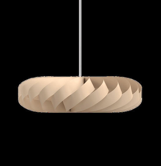 Die schöne Pendelleuchte hat eine gedrehte Form, die das Licht in alle Richtungen streut, aber gleichzeitig die Lichtquelle abschirmt. Daher ist sie sowohl eine gemütliche als auch funktionale Lampe, die aus guter Handwerkskunst gefertigt ist. Die Lampe ist ideal über dem Ess- oder Küchentisch und kann problemlos mit anderen Tom Rossau Pendelleuchten kombiniert werden.