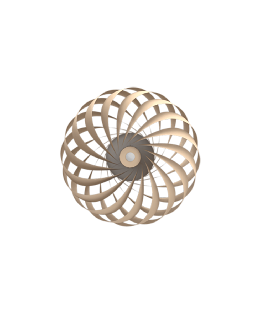 Die schöne Pendelleuchte hat eine gedrehte Form, die das Licht in alle Richtungen streut, aber gleichzeitig die Lichtquelle abschirmt. Daher ist sie sowohl eine gemütliche als auch funktionale Lampe, die aus guter Handwerkskunst gefertigt ist. Die Wandleuchte ist schön an der Wand zu hängen und wird jeden Raum schmücken, wo sie fast wie eine große Blume an der Wand aussieht.