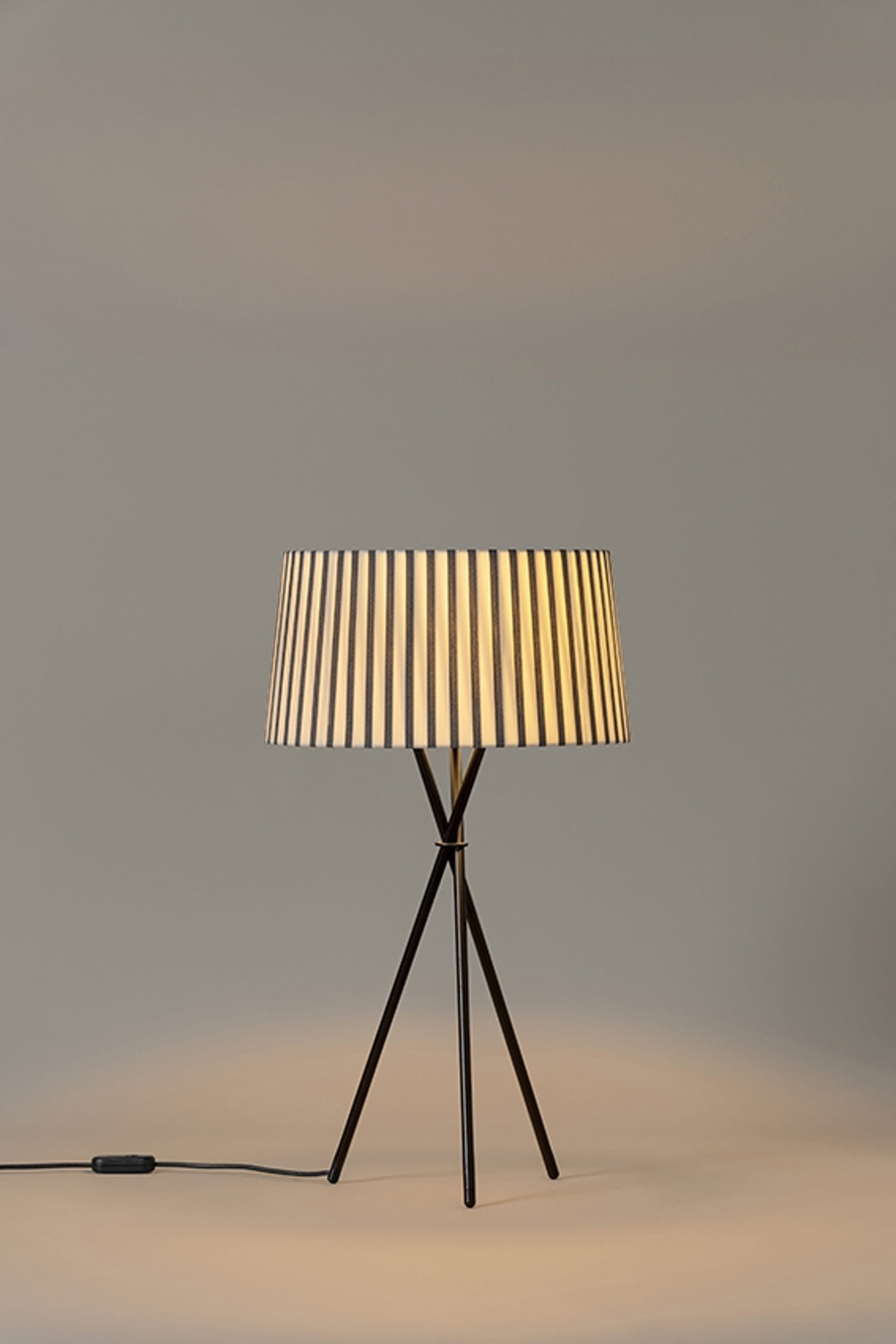 Santa & Cole Tripode G6 25 Jahre Jubiläum Tischleuchte, bretonisch gestreifter Schirm.