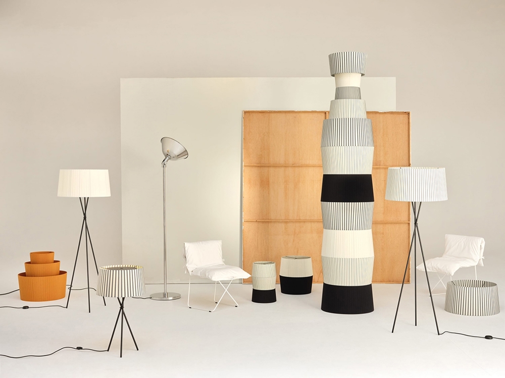 Santa & Cole Tripode G6 25 Jahre Jubiläum Tischlampe, diplomatica gestreifter Schirm.