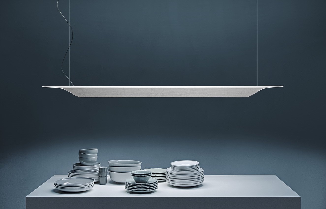 Troag ist eine einfache Pendelleuchte. Ihre Inspiration stammt von den schwedischen kanuförmigen Schalen.