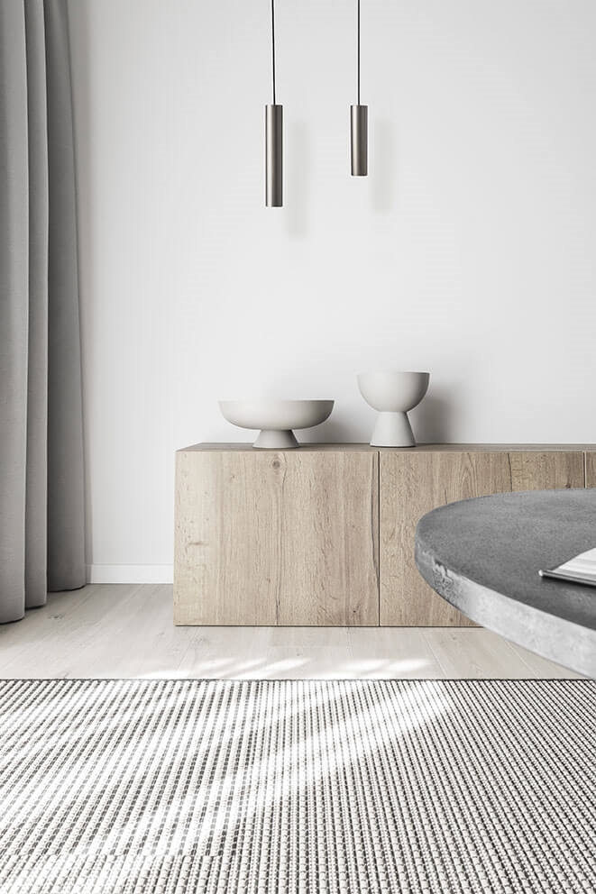 Die Pendelleuchte ist in Weiß, Messing, Schwarz, Titan und Beige erhältlich. Die Varianten in Weiß und Messing verleihen ein feminines, ruhiges und eleganteres Aussehen, während die Varianten in Schwarz und Titan einen raueren und maskulinen Ausdruck bieten. In Beige bietet die Pendelleuchte einen neutraleren und zeitlosen Look, der in vielen Einrichtungsstilen verwendet werden kann.