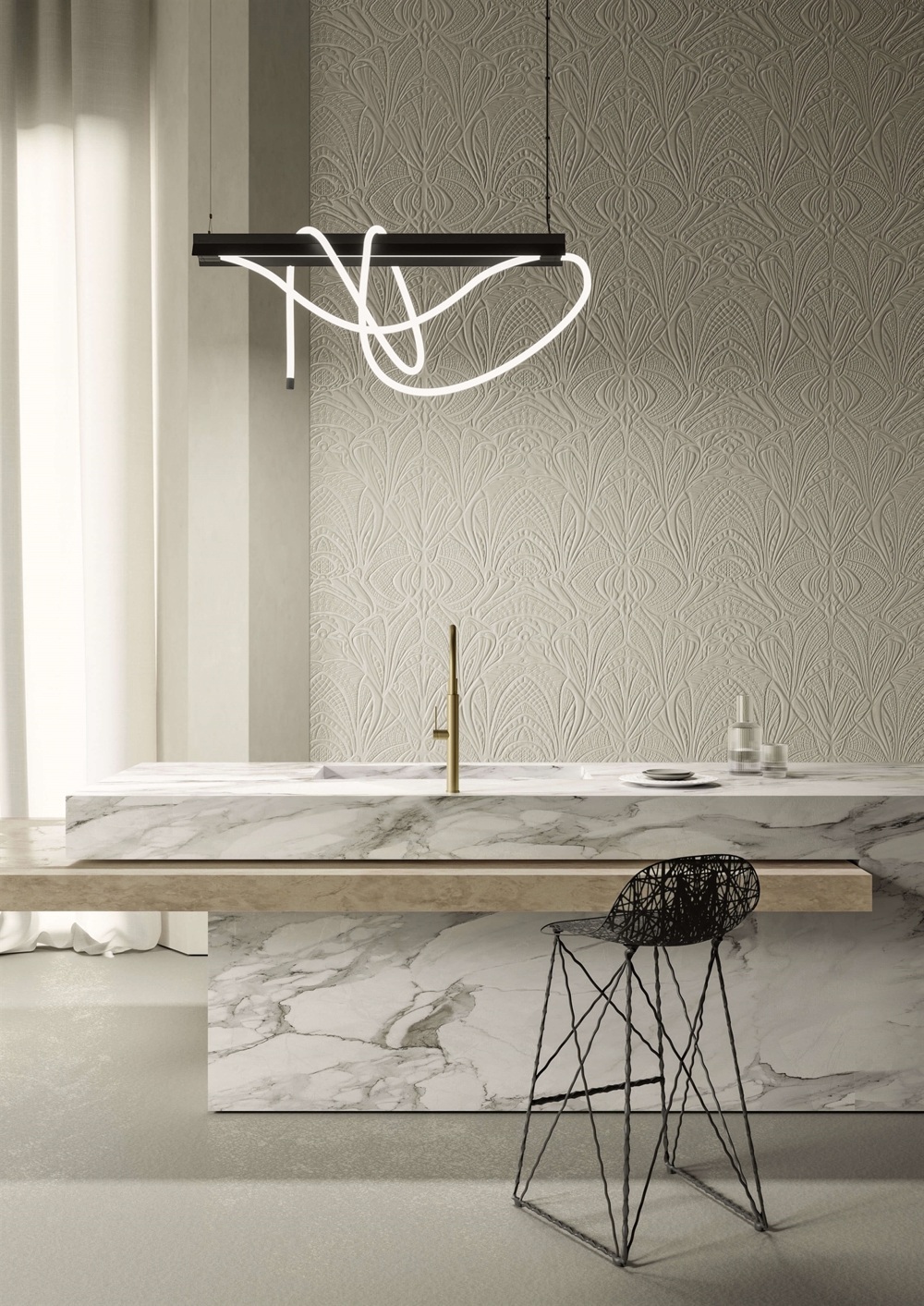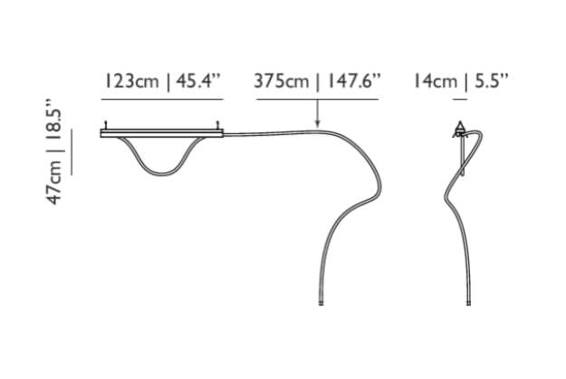 Tubelight ist auch in einer Version mit einem 1,5 Meter langen LED-Schlauch aus Silikon erhältlich, der in einem Bogen unter dem Gestell hängt.