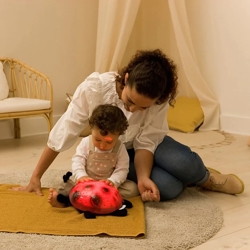 Twilight Ladybug schafft eine gemütliche und sichere Atmosphäre für jedes Kind. Ladybug ist immer bereit für ein Nickerchen und hilft allen Kindern beim Einschlafen. Sie bietet ein beruhigendes und entspannendes Licht vor dem Schlafengehen in Form eines Sternenhimmels, was die Nacht viel weniger beängstigend und viel lustiger macht. Der Sternenhimmel kann an die Wand oder die Decke projiziert werden, wobei zwischen drei verschiedenen Farboptionen gewählt werden kann: Grün, Blau und Bernstein/Rot. Grün steht für die Natur, Blau hilft, die Sinne zu beruhigen, und Bernstein schafft Wärme.