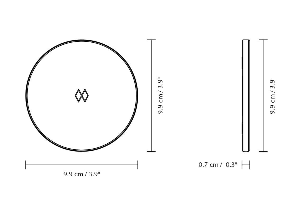 Maße: Ø9,9 x H0,7 cm