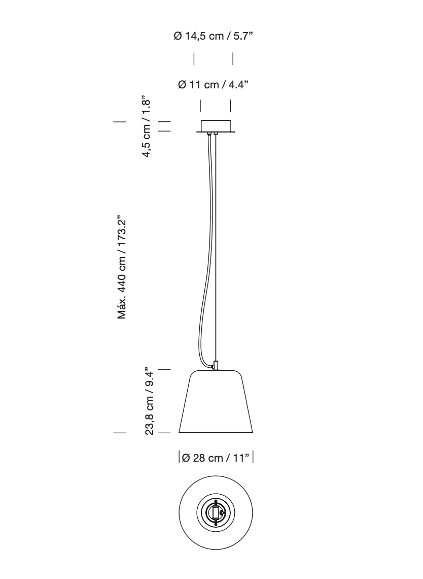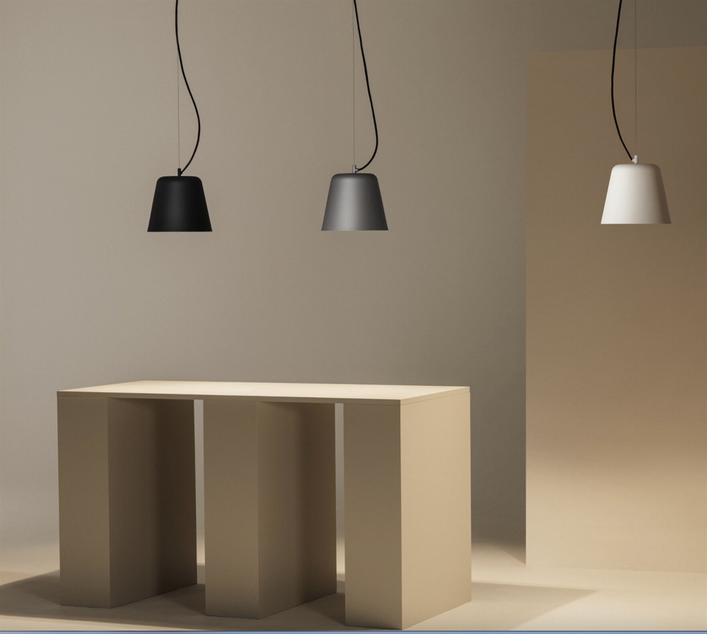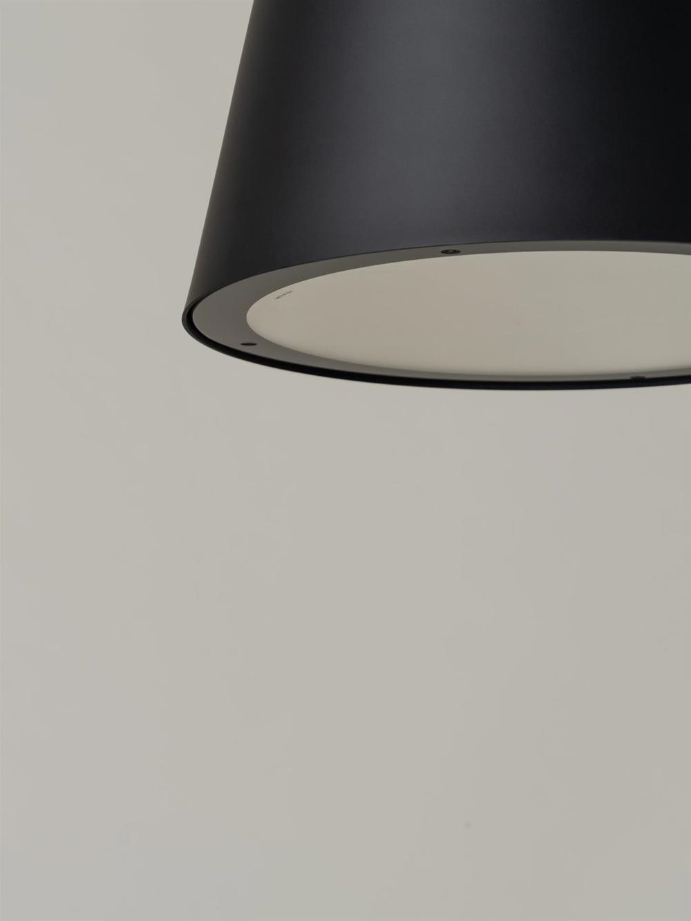 Vaso ist eine einfache und effektive Pendelleuchte, die mit ihrem konisch geformten Design und ihrer leicht gebogenen Oberfläche eine Vielzahl von Anwendungsmöglichkeiten bietet. Hängen Sie sie einzeln oder in Reihe auf. Das zeitlose Design und die kraftvolle Lichtquelle können in vielen Kontexten verwendet werden.