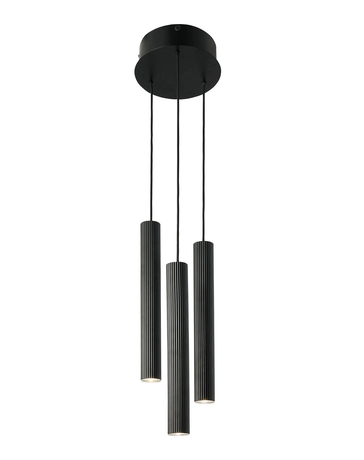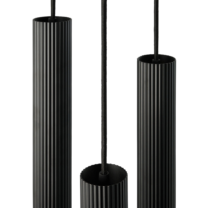 Vico 3-Rondel besticht durch ein minimalistisches und schlankes Design und verkörpert mit seinem eleganten Ausdruck skandinavische Eleganz. Die Pendelleuchte mit drei geriffelten Schirmen lässt sich leicht in der Höhe verstellen und eignet sich ideal als Beleuchtung über dem Esstisch, kann aber auch an anderen Orten mit Bedarf für nach unten gerichtetes Licht verwendet werden.