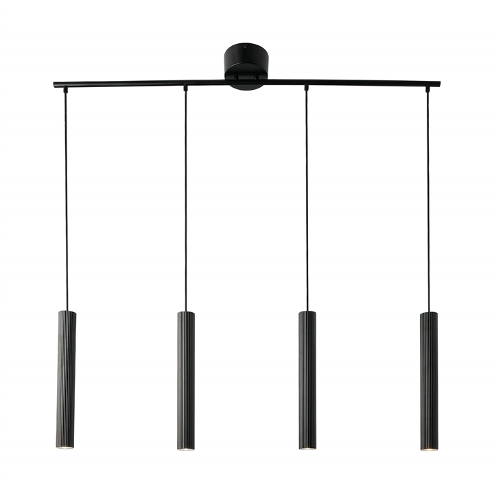 Vico 4-Rail besticht durch ein minimalistisches und schlankes Design und verkörpert mit seinem eleganten Ausdruck skandinavische Eleganz. Die Pendelleuchte mit vier geriffelten Schirmen eignet sich ideal als Beleuchtung über dem Esstisch, kann aber auch an anderen Orten mit Bedarf für nach unten gerichtetes Licht eingesetzt werden.