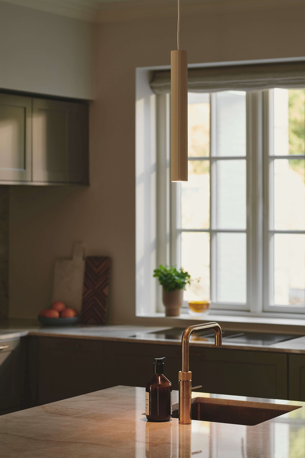 Die Vico Pendelleuchte hat ein minimalistisches und geradliniges Design und ist mit ihrem schlanken Ausdruck der Inbegriff skandinavischer Eleganz. Die Pendelleuchte mit dem geriffelten Schirm lässt sich in der Abhängehöhe leicht verstellen und kann einzeln oder in einer Reihe bzw. als Cluster überall dort eingesetzt werden, wo Details in der Einrichtung mit einem nach unten gerichteten Licht betont werden sollen.