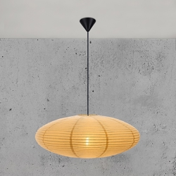 Die Villo Pendelleuchte hat einen Schirm aus Reispapier, der ein weiches und diffuses Licht erzeugt.