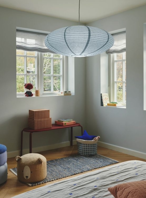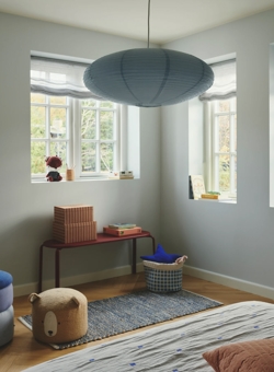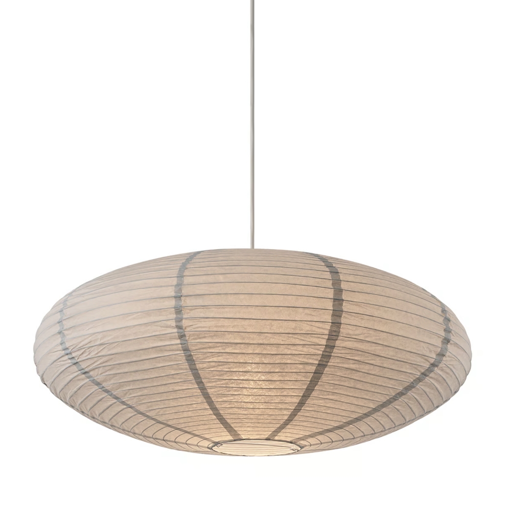 Die Villo Pendelleuchte hat einen Schirm aus Reispapier, der ein weiches und diffuses Licht erzeugt.