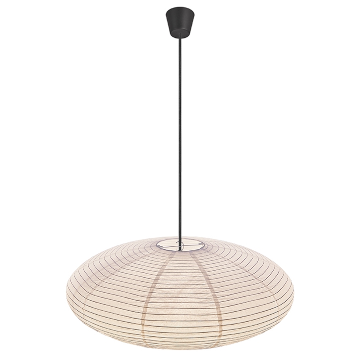 Die Villo Pendelleuchte hat einen Schirm aus Reispapier, der ein weiches und diffuses Licht erzeugt.