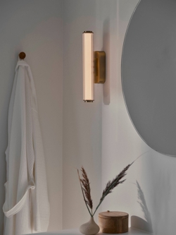 Mit Virelle erhalten Sie hochwertiges Licht für Eingangsbereich, Flur und Badezimmer oder für jeden anderen Raum, der eine stilvolle Beleuchtung mit modernem Ausdruck benötigt. Die Wandleuchte ist in zwei Größen in Schwarz oder Messing erhältlich.