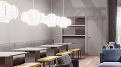 Eine fantastische Pendelleuchte, die durch den weißen Lampenschirm das Licht diffus macht.