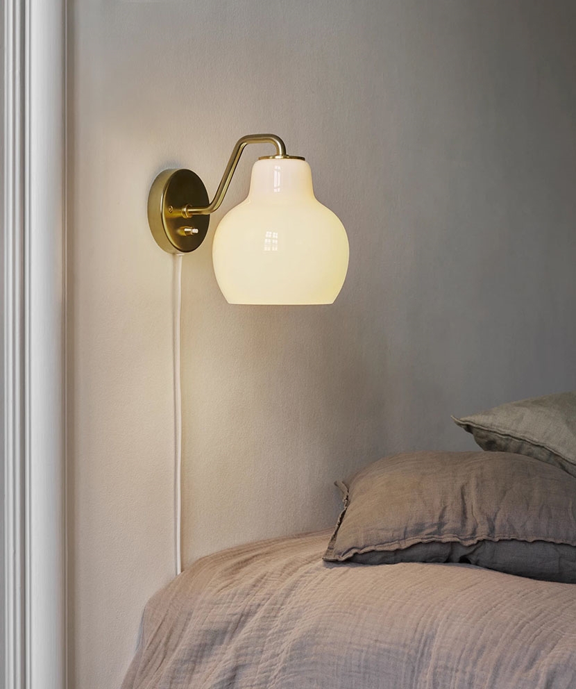 Die VL Ringkrone Leuchten basieren auf dem Originaldesign aus den 1930er Jahren, das für das Radiohuset in Kopenhagen entworfen wurde. Die einzigartigen VL Ringkrone Leuchten wurden 2019 mit Details aus Messing und Schirmen aus blankem, weißem mundgeblasenem Opalglas in drei Schichten wie die ursprünglichen Leuchten neu aufgelegt.