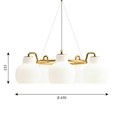 Louis Poulsen VL Ringkrone 5 Pendel, Messing/Blank Opal - entworfen von Vilhelm Lauritzen.