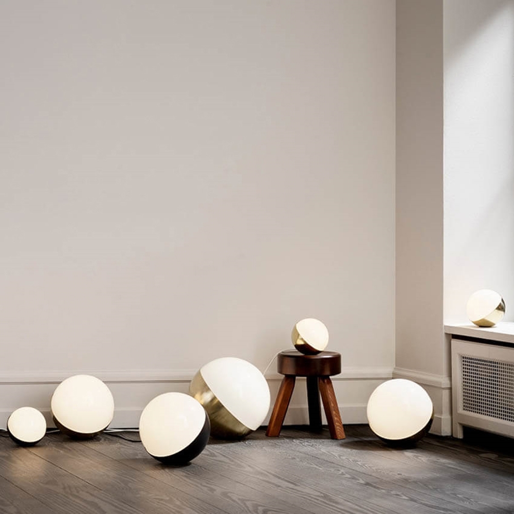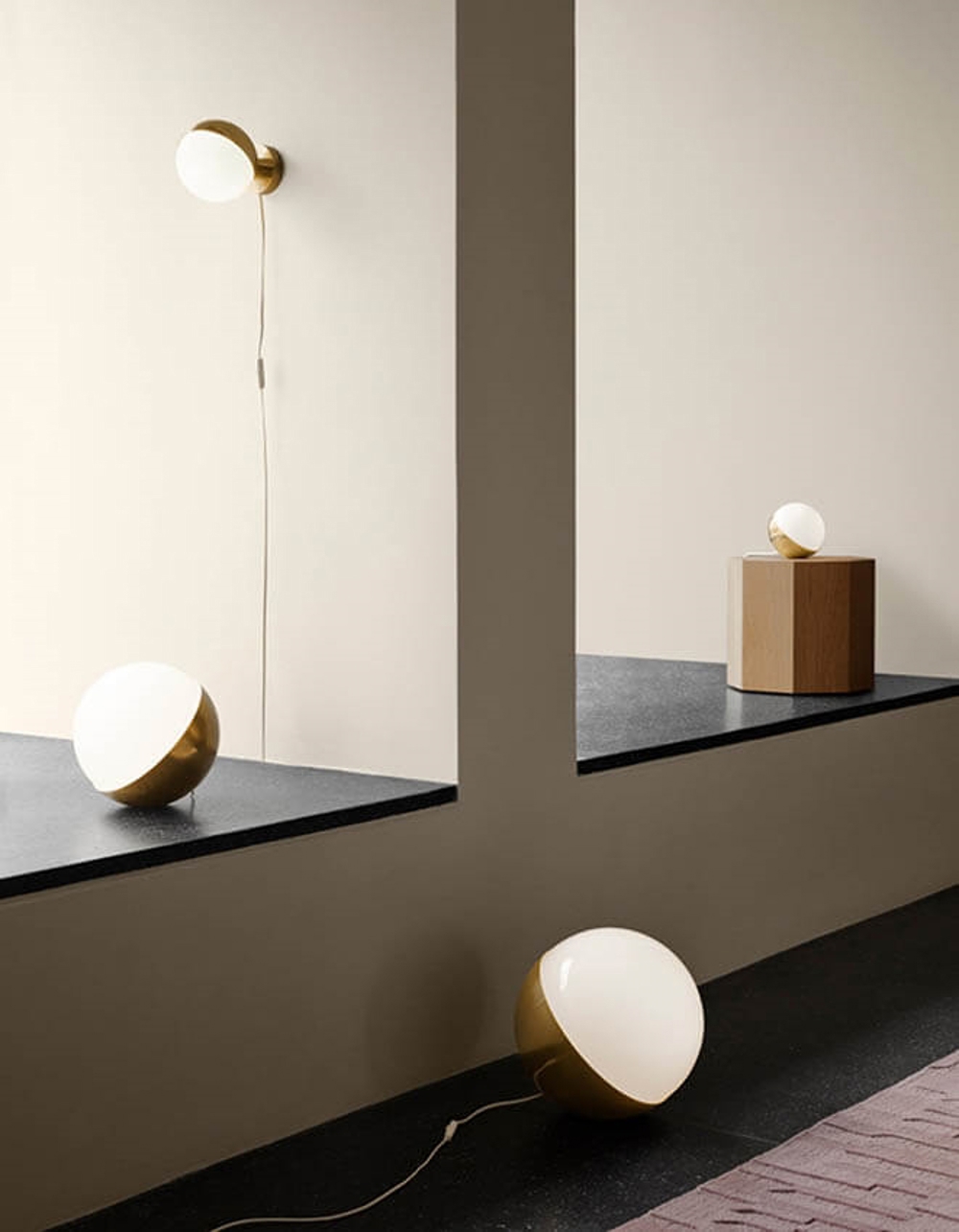 Das Glas besteht aus dreischichtigem Opalglas, das blendfreies und angenehmes Licht im Raum gewährleistet. VL Studio ist als Tischleuchte/Stehleuchte und Wandleuchte mit oder ohne Kabel in mattschwarz beschichtetem Aluminium oder gebürstetem, unbehandeltem Messing erhältlich, das im Laufe der Zeit patiniert!