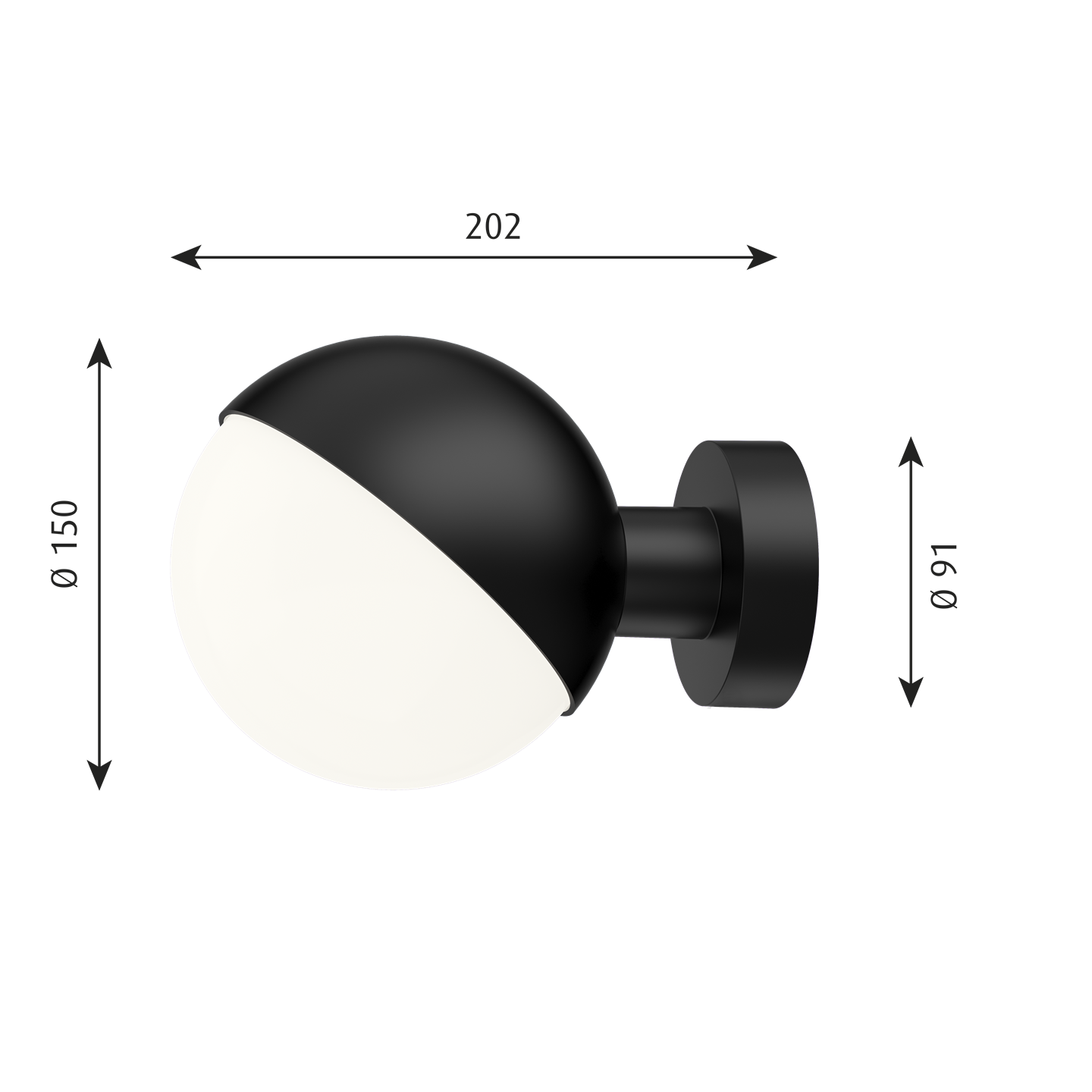 VL Studio Wandleuchte o/Kabel Ø150, schwarz