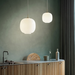 Die neu aufgelegte Version hat das gleiche Messinggestell und den dreischichtigen Glasschirm wie die ursprüngliche Lampe. Die VL45 Radiohus Pendelleuchte bietet ein weiches und angenehmes Licht, das durch die äußeren Schichten aus transparentem poliertem Glas mit einer weißen Glasschicht dazwischen gewährleistet wird.