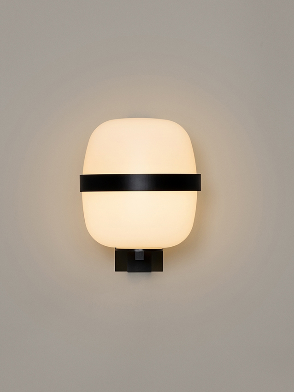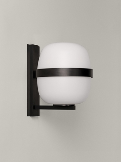 Die Wandleuchte gehört zur Familie der Cestita & Cesta Lampen, was sich in der ovalen Form der Lampe widerspiegelt.