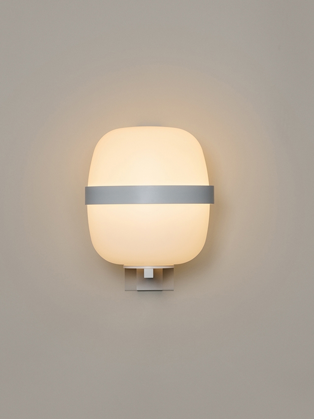 Die Wandleuchte gehört zur Familie der Cestita & Cesta Lampen, was sich in der ovalen Form der Lampe widerspiegelt.