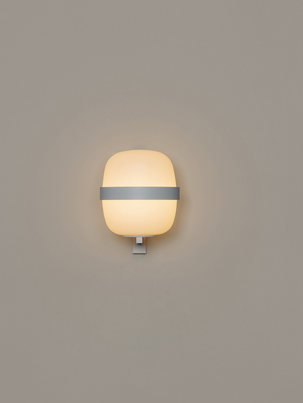 Die Wandleuchte gehört zur Familie der Cestita & Cesta Lampen, was sich in der ovalen Form der Lampe widerspiegelt.
