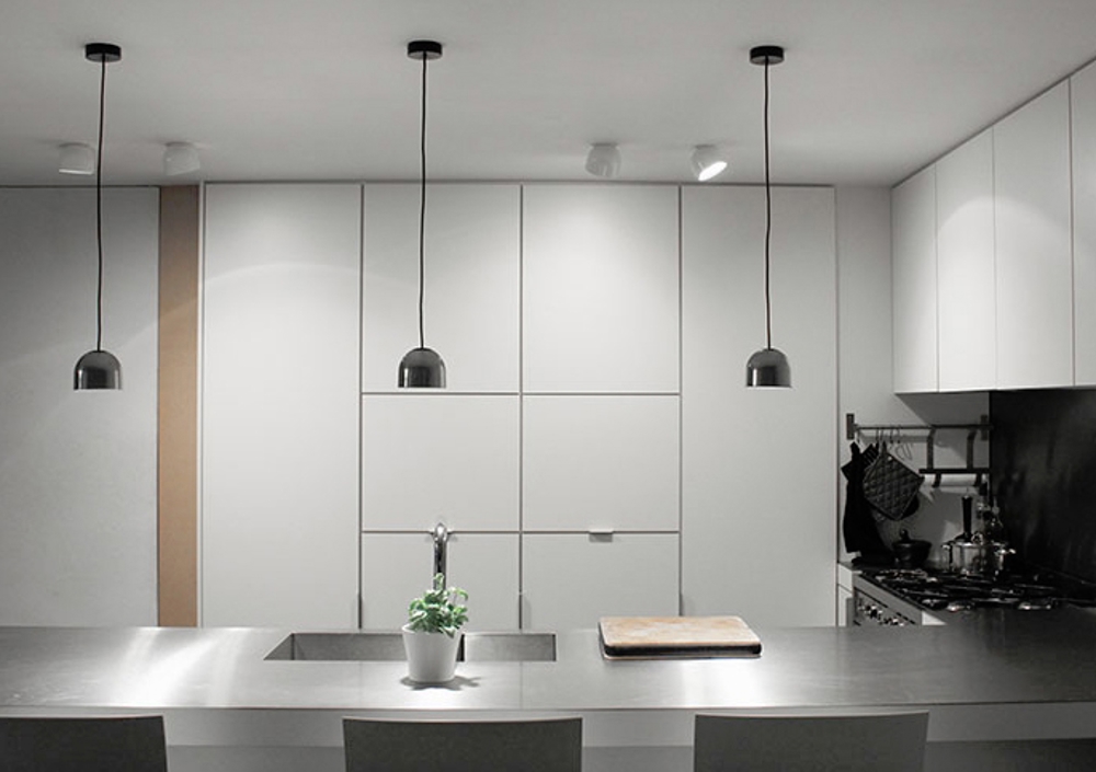 Die Wan Lampe von Flos gibt ein direktes, blendfreies Licht ab, da das Glas aus gehärtetem Sicherheitsglas besteht.