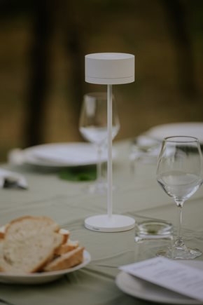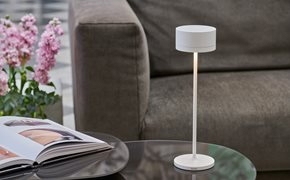 Die elegante Tischlampe ist für den Außenbereich geeignet dank der Schutzklasse IP65, und eine Ladestation mit Kabel und USB-Port ist im Lieferumfang enthalten, sodass Sie die Lampe einfach aufladen können.