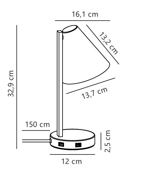 Maße: H32,9 x T16,1 cm, Schirm: Ø13,7 x H13,2 cm, Basis Ø12 cm